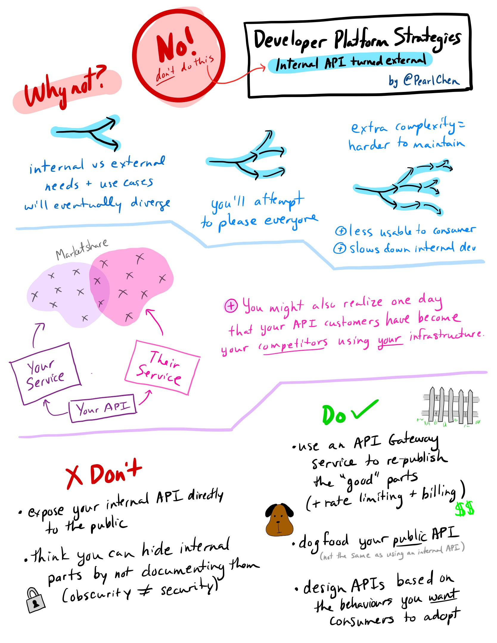 Turning the exact same API used internally into a public API will lead to all sorts of headaches that affect scalability, security, developer experience, and speed of internal development.